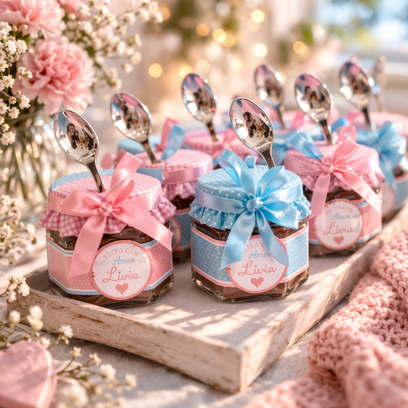 Encerrando minha curadoria sobre brigadeiro de colher, eu trago um exemplo de uma lembrancinha para chá revvelação. Uma forma elegante e chique de celebrar a chegada de um filho.