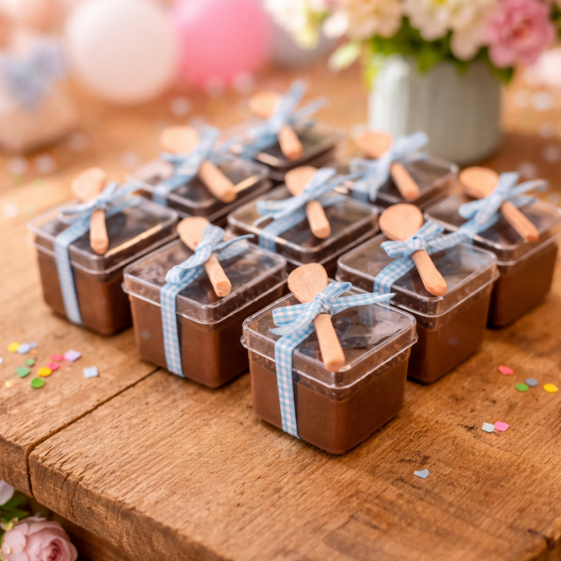 - Colherinhas descartáveis (compre no pacote junto com os potinhos)